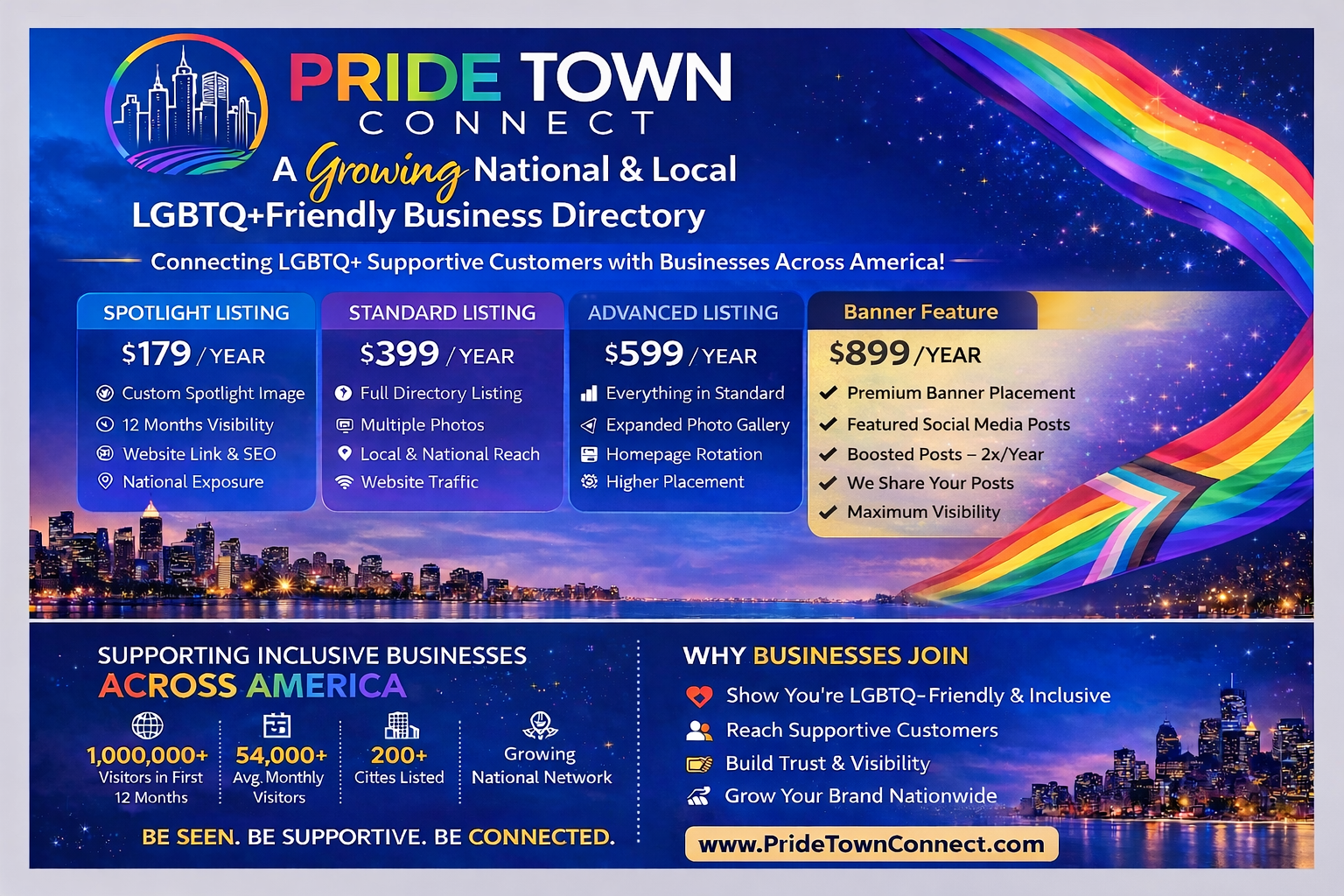 The listings below from (8/2024 to 03/2026) were seen by over 1,229,381+ visitors to our site and over 10,867,983+ site wide total page views. Our average visitor engagement time on the site in the past 1.5 years days averages 5:11 minutes. Please see our website stats page for specific statistical data on our LGBTQ+ friendly cities and user site traffic. This listings below comprise the LGBTQ+ friendly business in our LGBTQ+ friendly business directory.